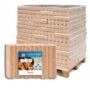 Conditionnée en sacs de 6 bûches calorifiques, la palette contient en 112 sacs, soit un poids total d’environ 1120kg, ce qui représente environ 4 stères de bois en bûches traditionnelles. Les dimensions de la palette de bûches compressées sont de 120x90x120.